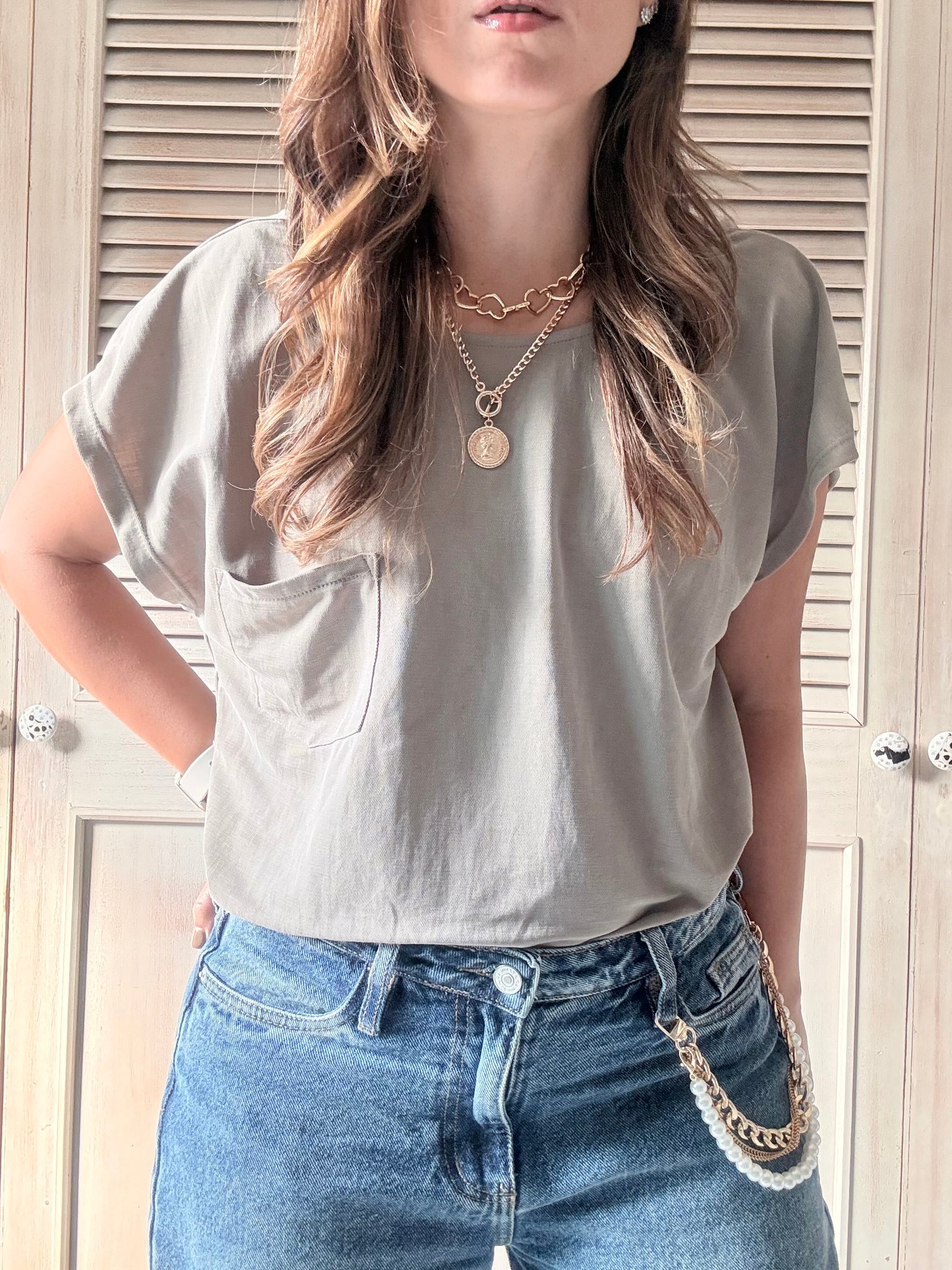 Básica/Manga Corta / Bolsillos/ Manga Corta /cuello redondo /Espalda en v